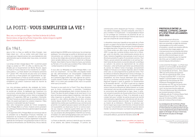 A la suite d'une décision de Philippe Wahl, président du conseil d'administration de La Poste et directeur général de l’entreprise, nous ne pouvons plus proposer d’abonnements papier à l’étranger. Les explications dans l’article ci-joint, paru dans le numéro 71 de Profession Photographe.