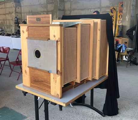 On parle de grand format avec la chambre 8x10" (20x25 cm) et de très grand format avec la chambre 20x24" (40x60 cm). On retrouve ces pièces extraordinaires dans la programmation des 10 ans du Festival Expolaroid chez :